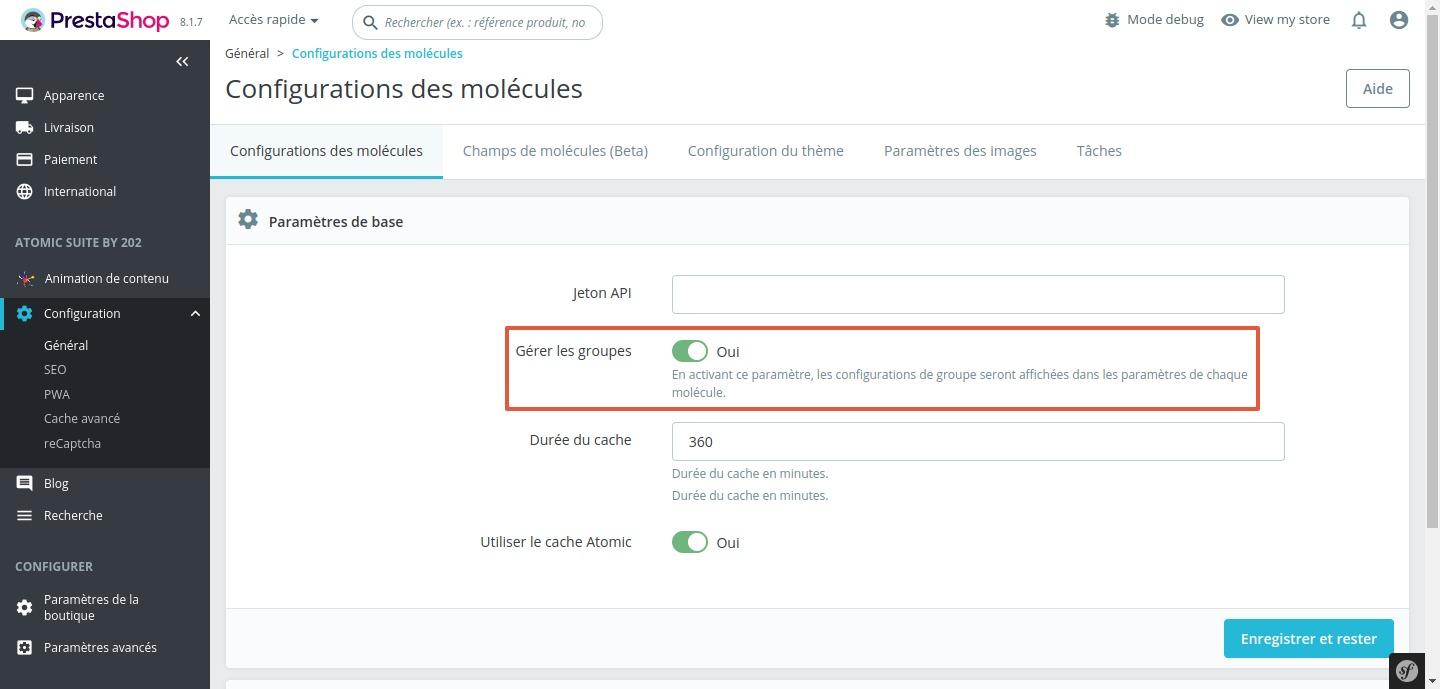 Pour ce faire, assurez-vous que l’option “gérer les groupes” soit activée dans les paramètres généraux de Atomic.